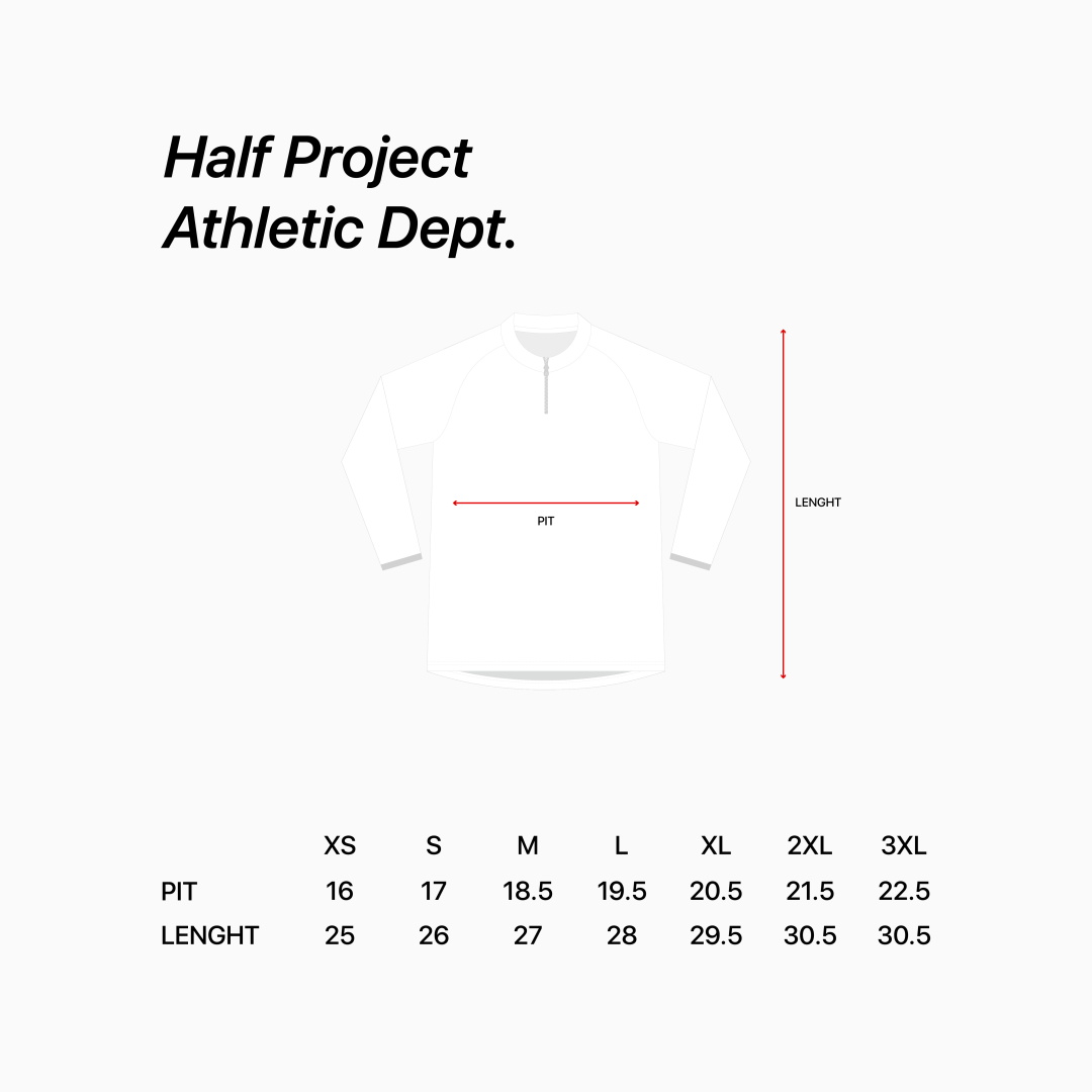 Made from lightweight jacquard fabric (115gsm), the Half Project Athletic Department collection represents precision, discipline, and style in motion.